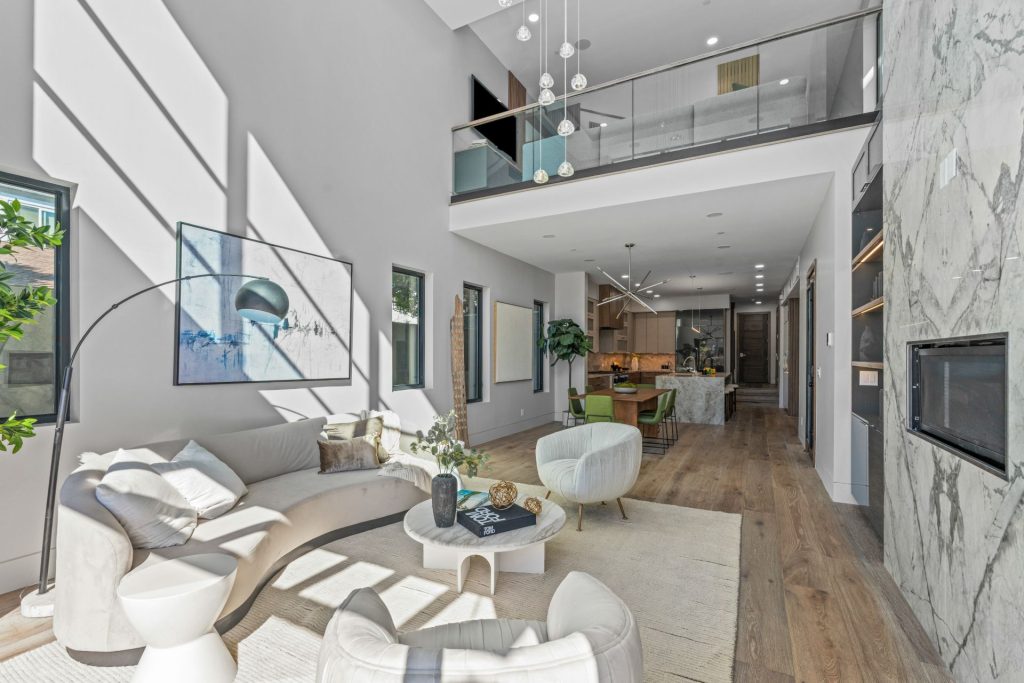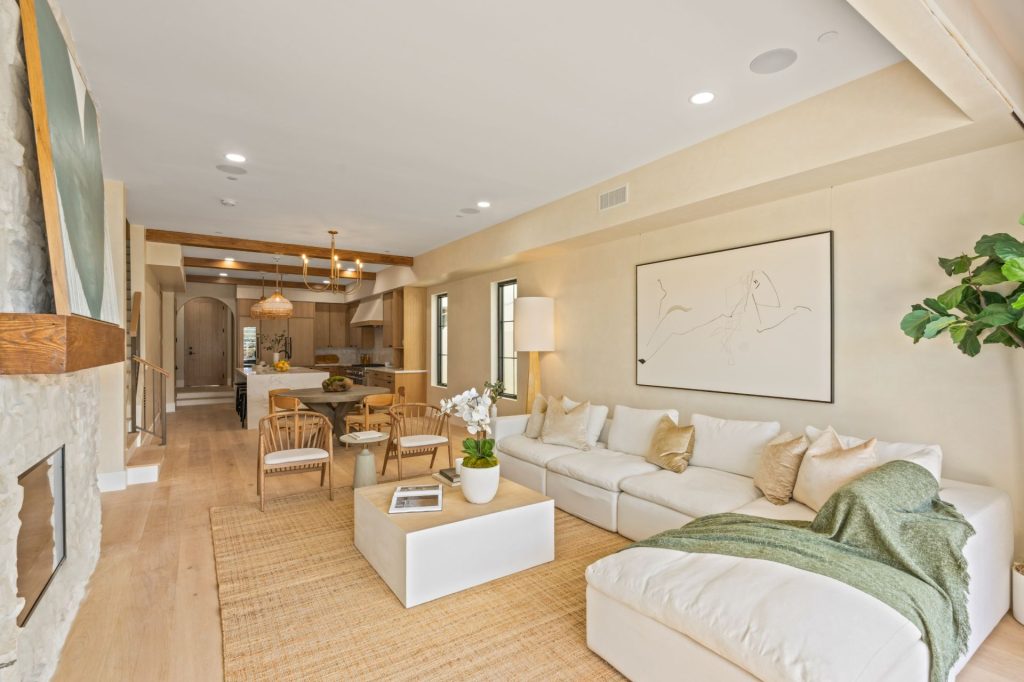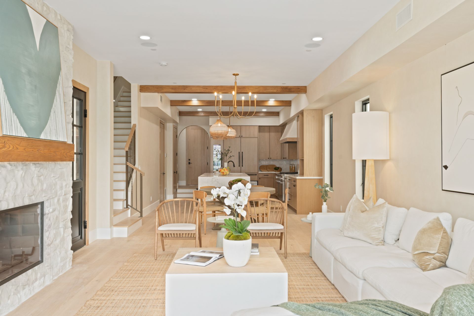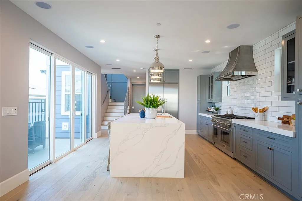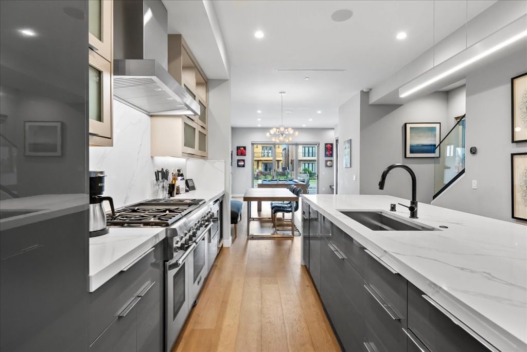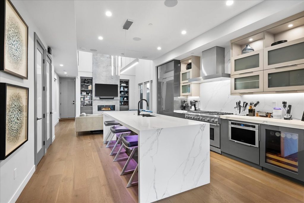 First floor boasts spacious living area and chefs kitchen with 36 inch gas stove and stone counter tops