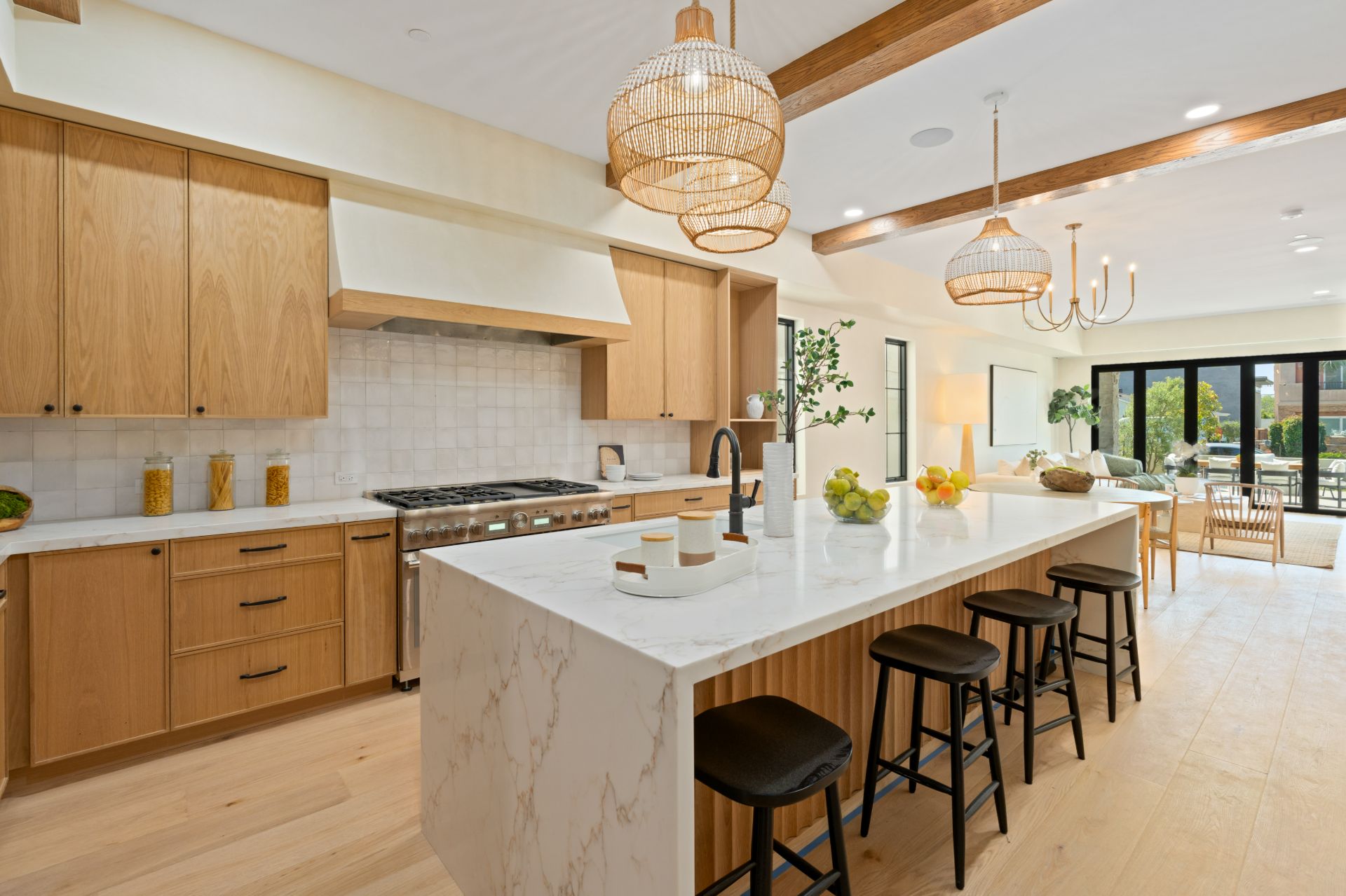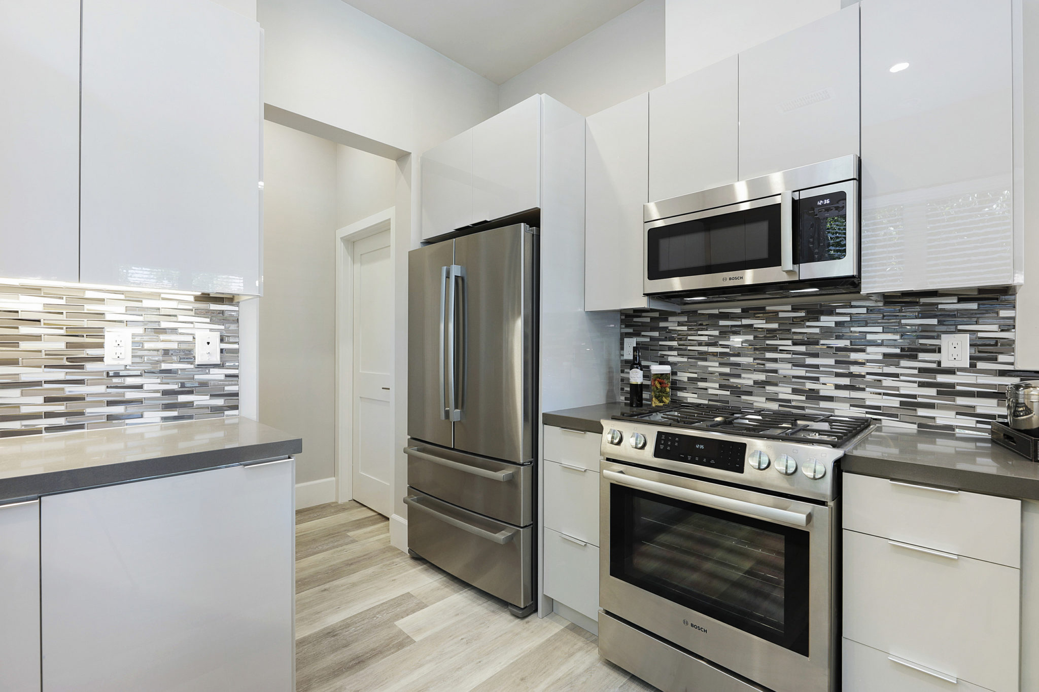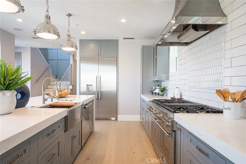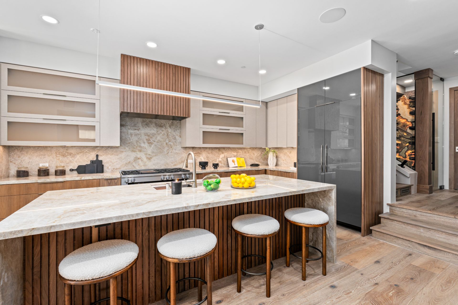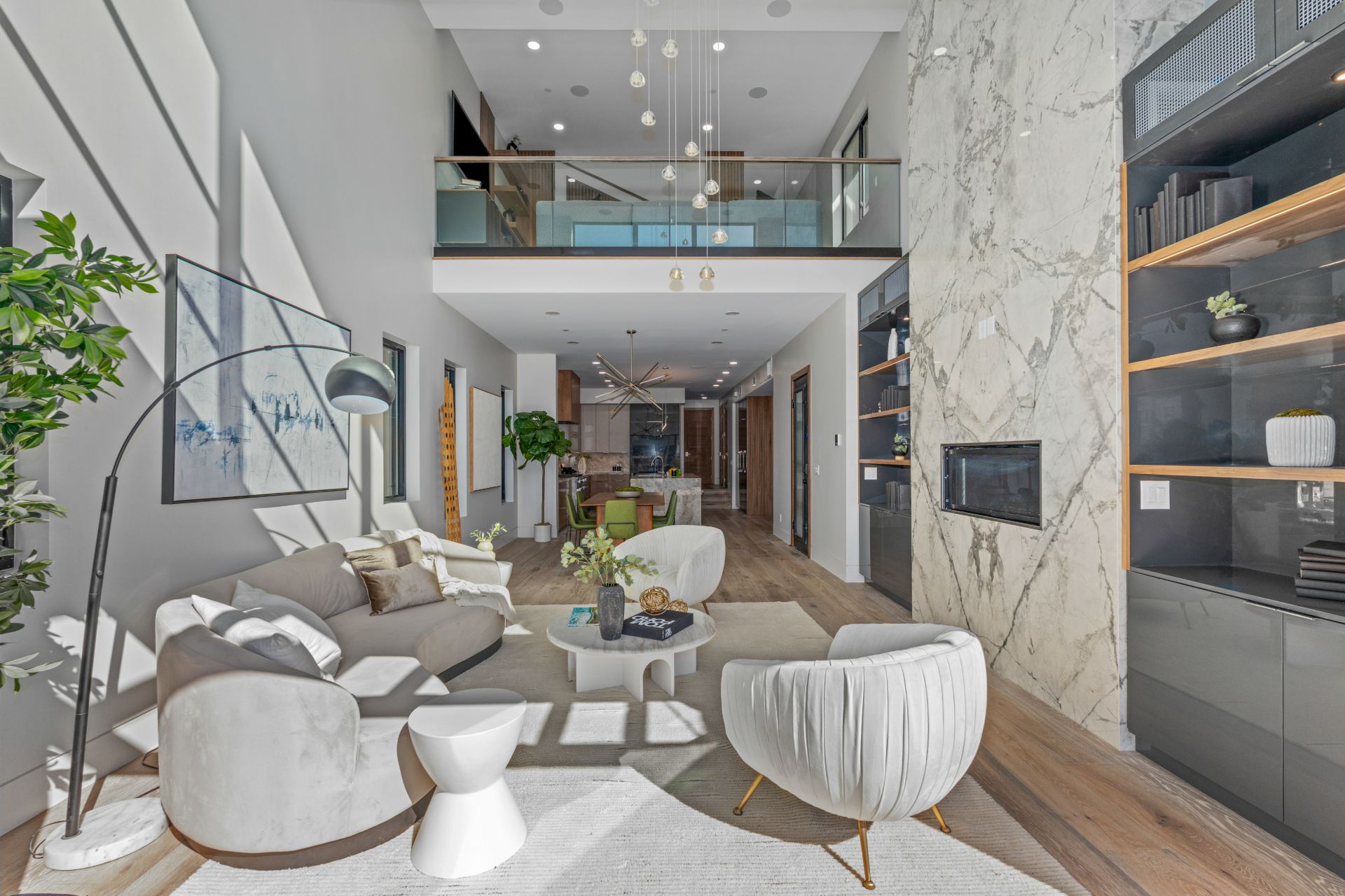 First floor boasts spacious living area and chefs kitchen with 36 inch gas stove and stone counter tops