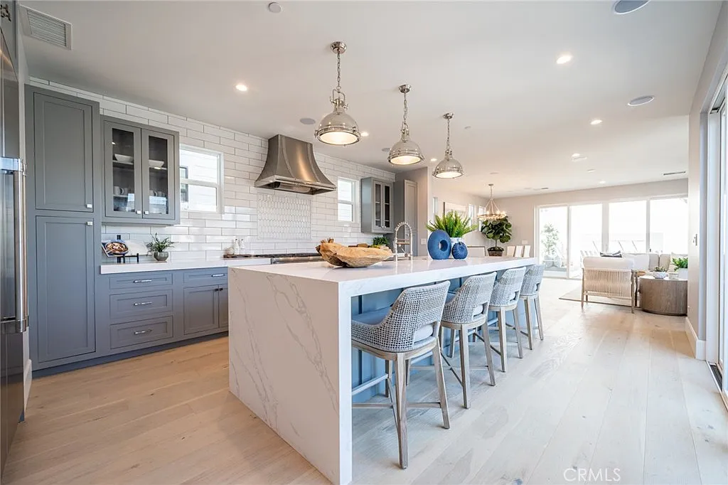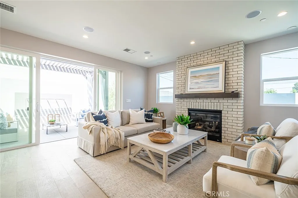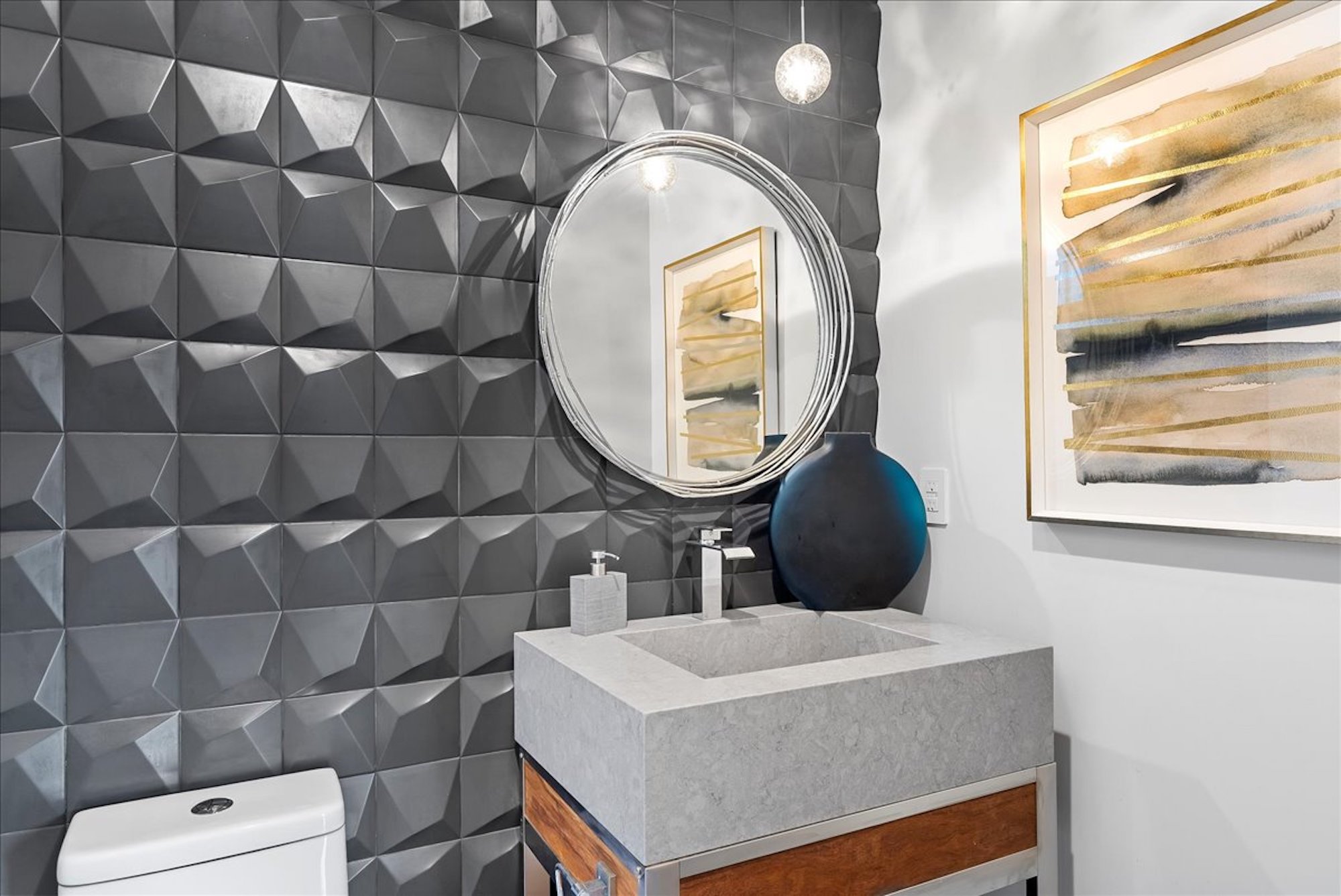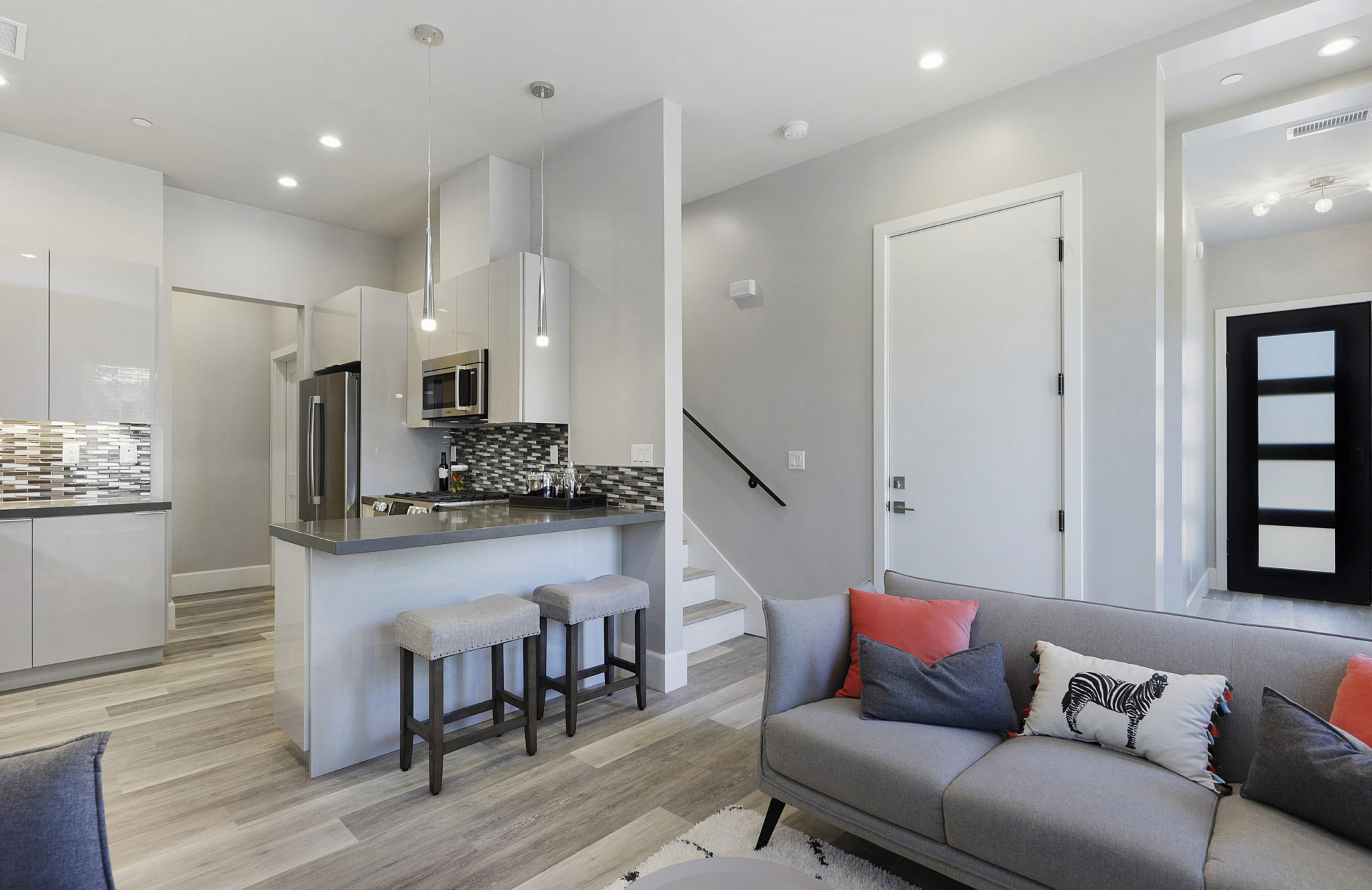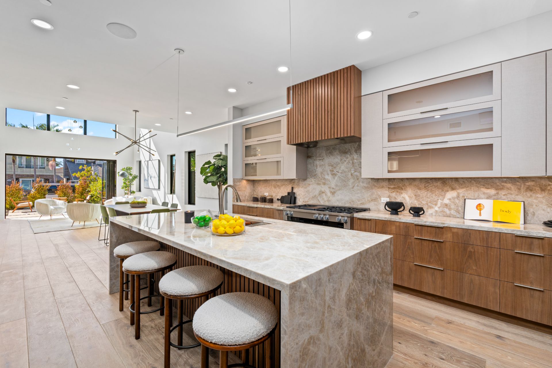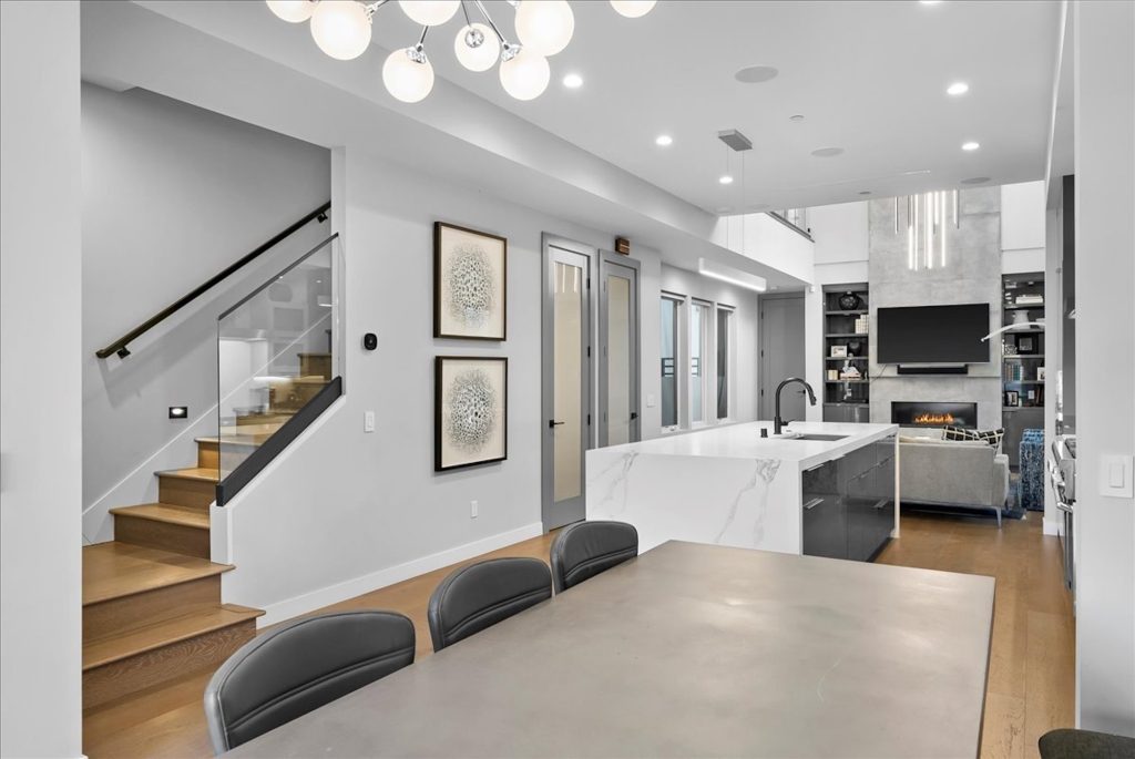 First floor boasts spacious living area and chefs kitchen with 36 inch gas stove and stone counter tops