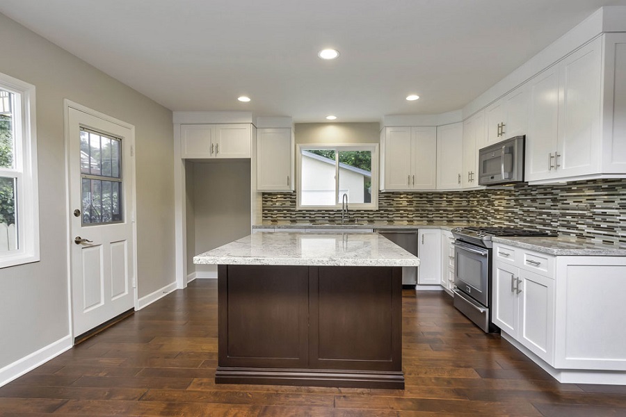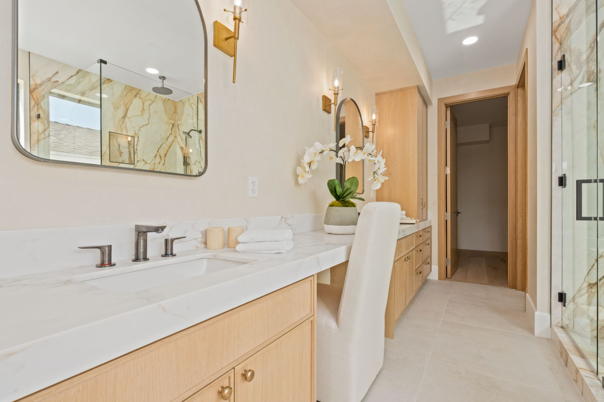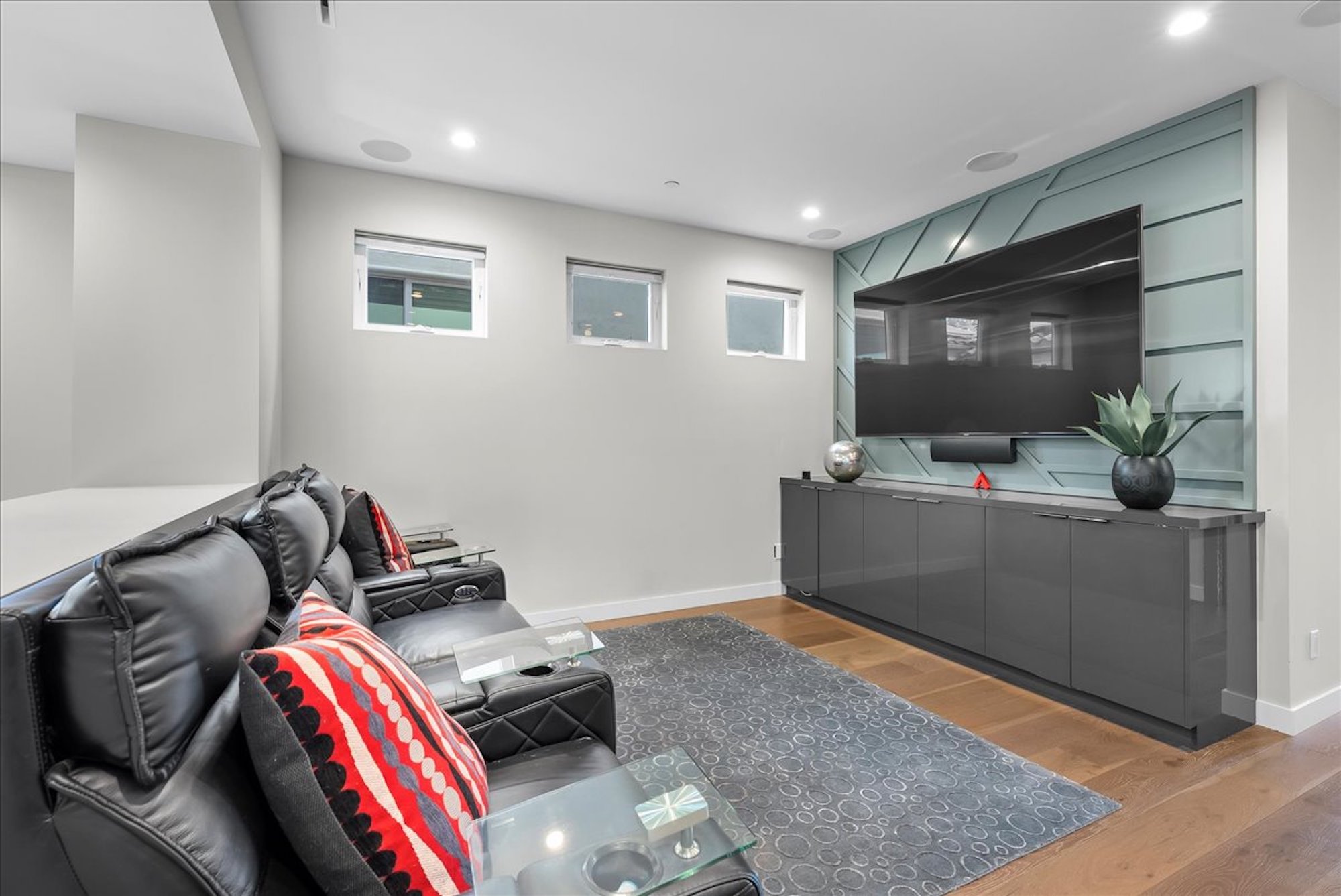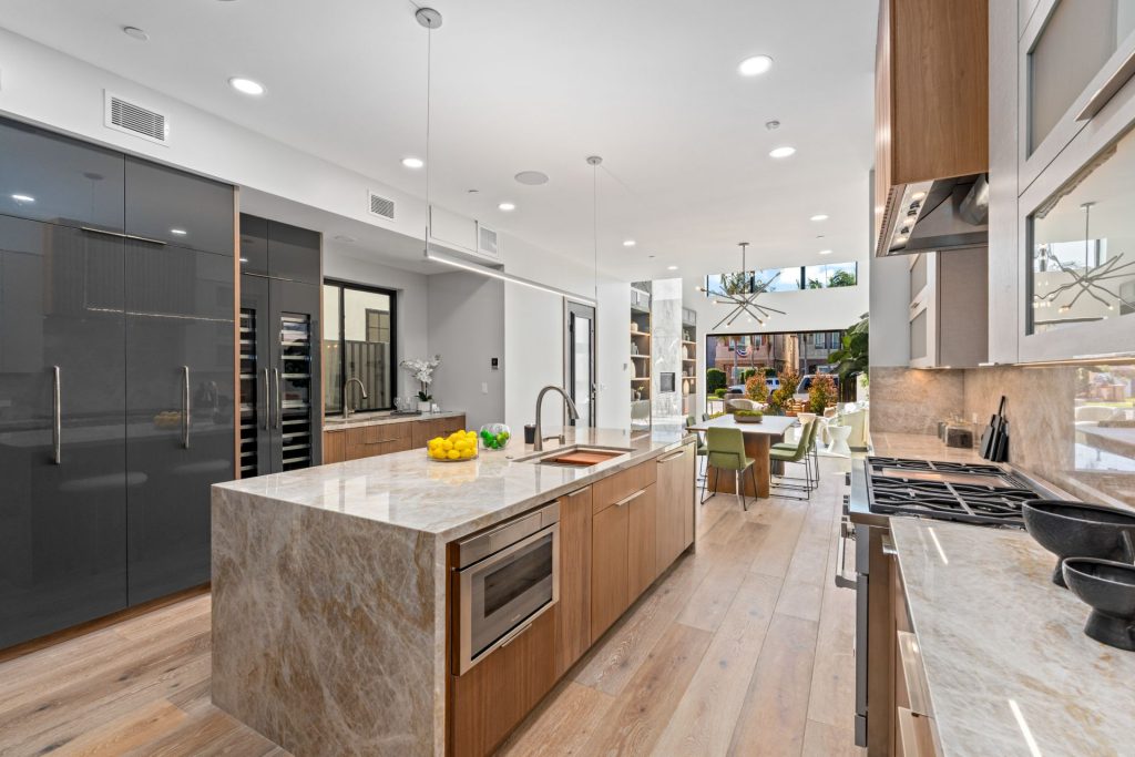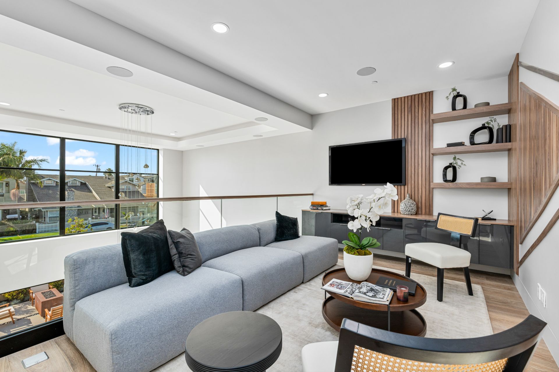 First floor boasts spacious living area and chefs kitchen with 36 inch gas stove and stone counter tops